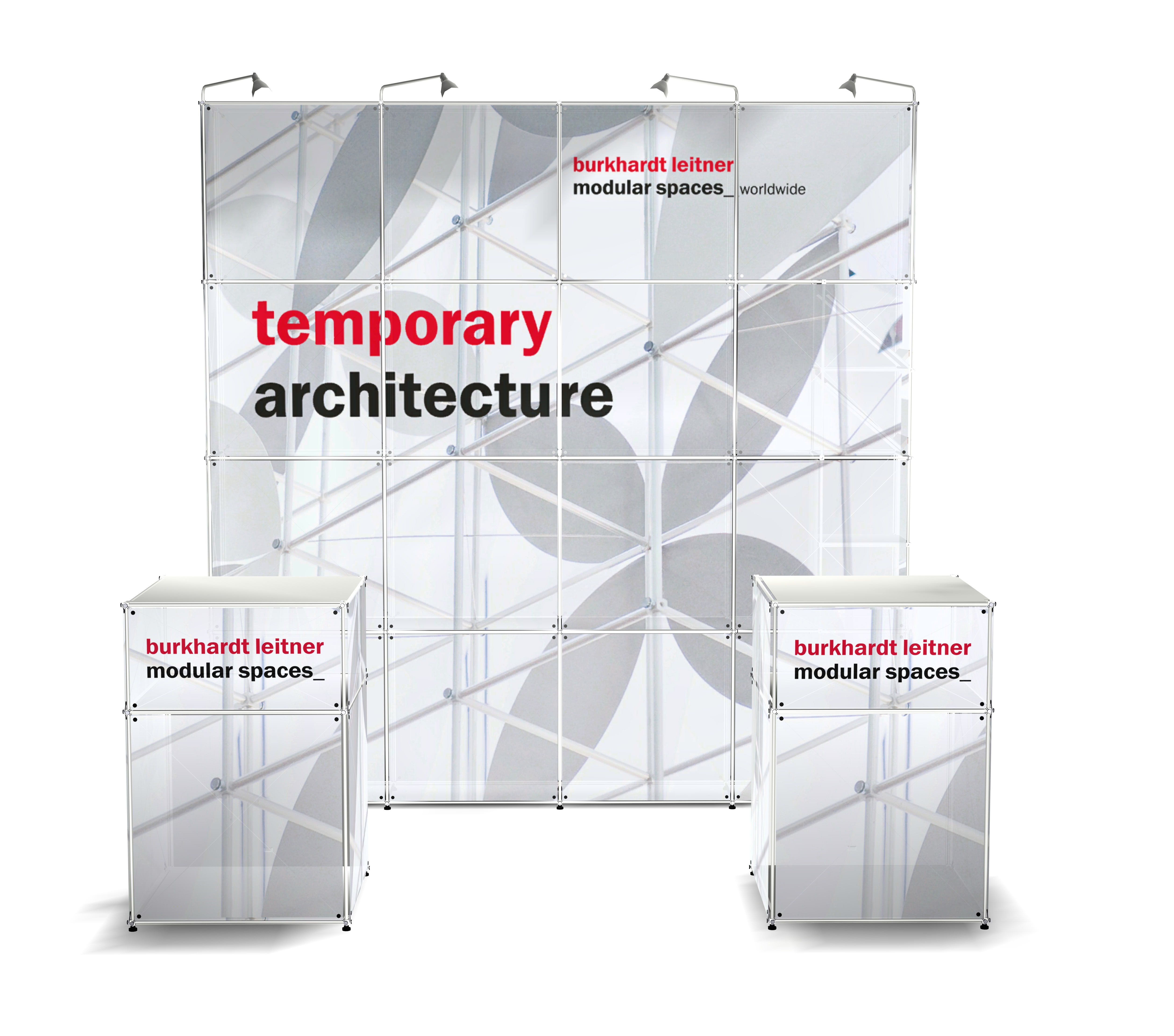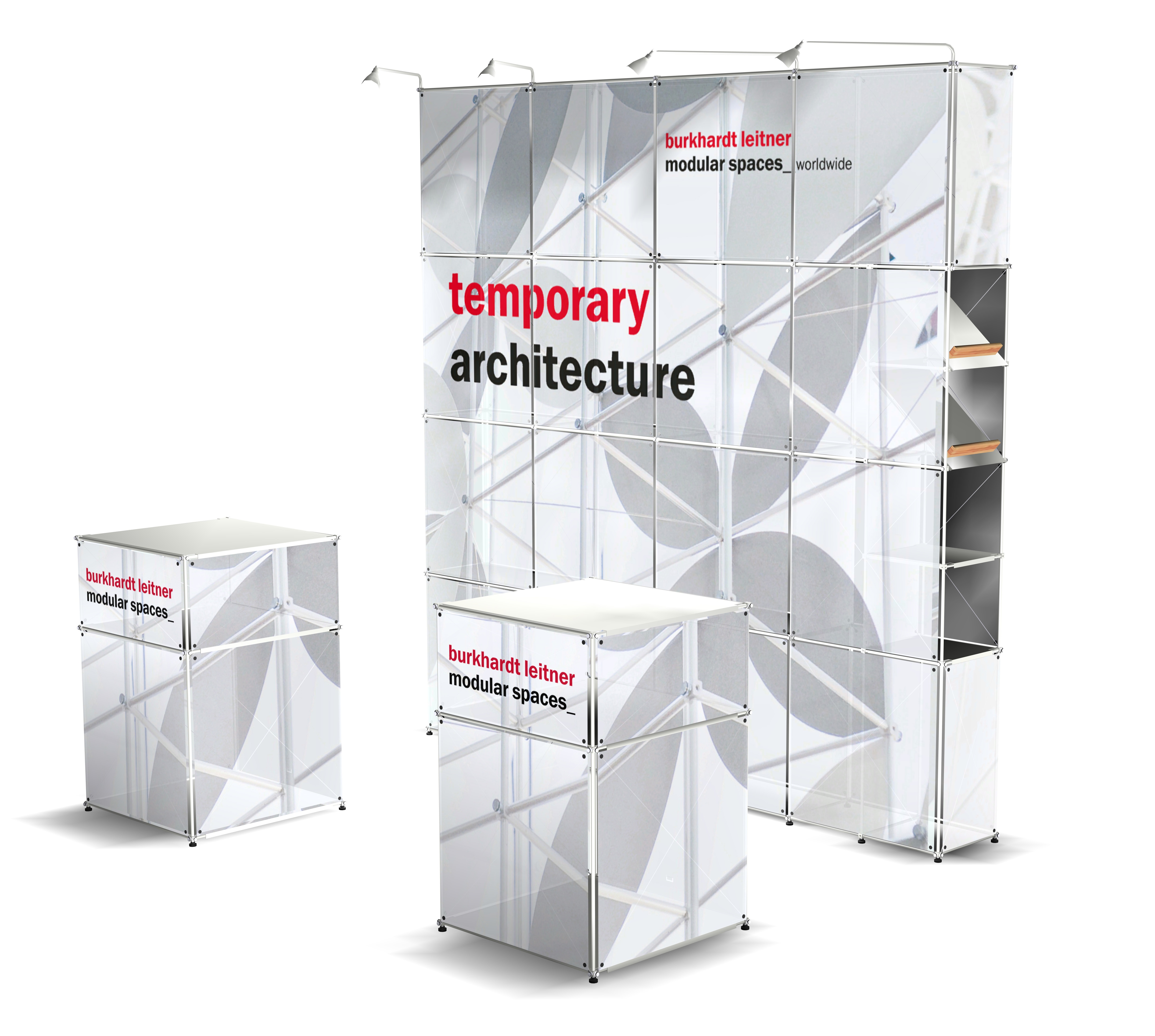 - nekonvenční policový a nábytkový systém s širokou škálou doplňků – skladovací kontejnery, integrované osvětlení, sklopné police, atd.